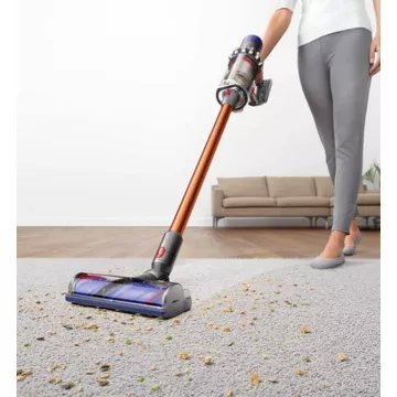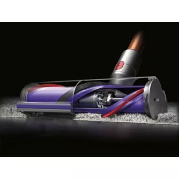 L’aspirateur-balai Cyclone V10 Absolute est équipé d’une brosse à rotation Motorbar, pensée spécialement pour les moquettes et tapis. Les deux rouleaux à rotation inversée capturent les grosses poussières, tandis que la technologie Dyson s’occupe spécialement des poussières plus fines. Le plus : une mini brosse motorisée s’attaque aux espaces confinés et aux tissus d’ameublement avec une aspiration profonde et un résultat impeccable.
