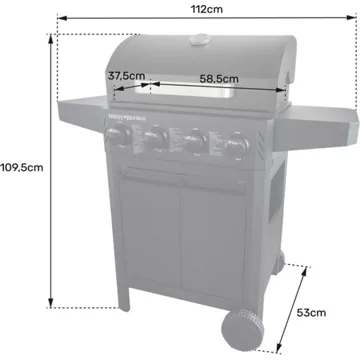 – Barbecue : L 112 × l 53 × H 109,5cm