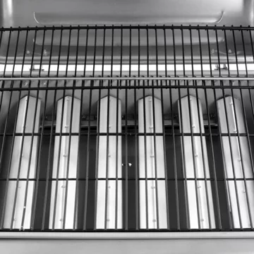 Le gril à gaz dispose d’un design élégant et fonctionnel. Il a une grande surface de cuisson et une hotte robuste avec un thermomètre intégré qui affiche avec précision la température de cuisson. Les tables latérales offrent un espace de travail supplémentaire pour faire des sauces ou vos plats favoris. Un récipient d’égouttage à graisse amovible est également inclus et est facile à nettoyer.
