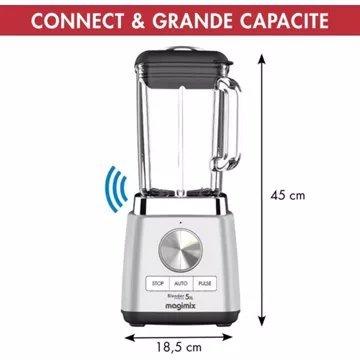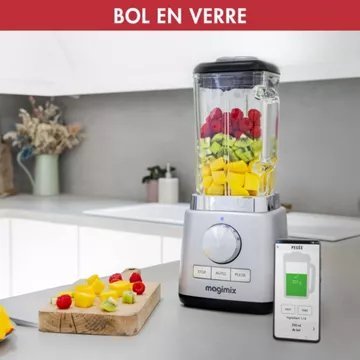 Pour profiter de davantage de facilité d’utilisation, le blender MAGIMIX Power 5XL peut être relié à votre téléphone grâce à son Bluetooth intégré. Lancez l’application, définissez vos réglages et appuyez sur la touche AUTO de l’appareil, il s’occupe du reste.