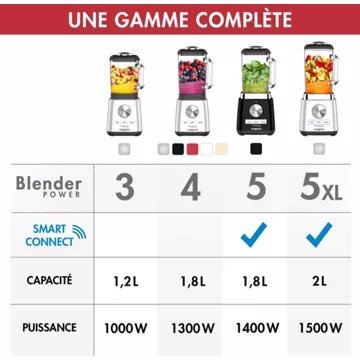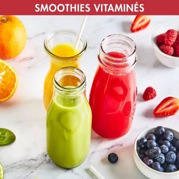 Cet appareil polyvalent de 1 500 W est donc idéal pour réaliser de nombreuses recettes, de l’entrée au dessert. Que vous choisissiez de lui confier des aliments surgelés ou frais, rien ne lui résiste. Vous pouvez même préparer une soupe ou un velouté quand la température extérieure ne permet pas de déguster un granité ou un milkshake. Le bol gradué en verre thermorésistant offre suffisamment de robustesse pour mixer des aliments chauds ou froids.