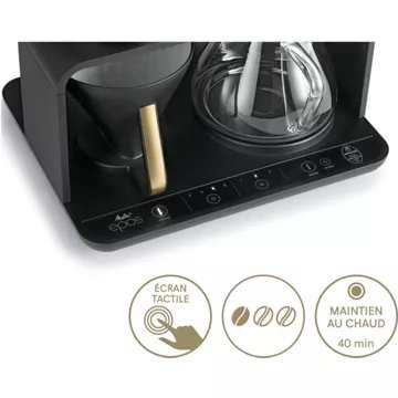 - Cafetière : : filtre, l’eau se déverse goutte à goutte pour une extraction douce de votre café. Le café coule alors dans la verseuse et est prêt à être servi!