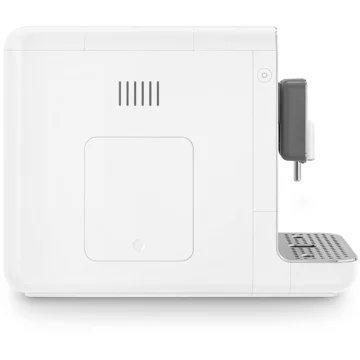 L’Expresso Broyeur SMEG BCC12WHMEU se distingue par son esthétique raffinée issue de la Collezione Materia, avec un support en aluminium brossé et des finitions mates qui ajoutent une touche d’élégance à tout type de cuisine. La couleur blanche de l’appareil, associée à des touches de gris fumé et d’aluminium, crée une harmonie visuelle séduisante. Les matériaux utilisés, tels que le plastique pour le corps et les touches de café, l’acier pour la buse et l’inox pour le broyeur, garantissent à la fois robustesse et facilité de nettoyage, tandis que le réservoir d’eau en SAN offre une durabilité et une résistance à la vapeur remarquables.