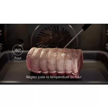 - Sonde de cuisson : la sonde de cuisson permet de surveiller la température à coeur de votre plat. Elle met fin au programme une fois la température atteinte. Vous avez la certitude de réussir vos cuissons même délicates