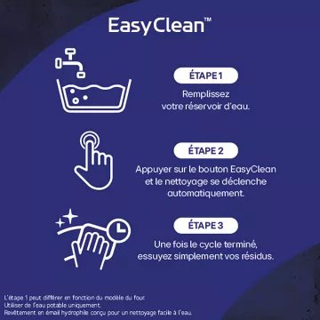 - Nettoyage express : EasyClean™ : un programme de nettoyage vapeur de 10 minutes seulement à 60°