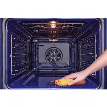 - Avantage vapeur (hydrolyse) : Il suffit de verser au fond la cavité de l’eau et du liquide vaisselle. Le four chauffe quelques minutes, l’eau se transforme en vapeur et ramollit les graisses. Un coup d’éponge pour retirer les résidus tombés dans la cavité. Ce système est écologique et économique.