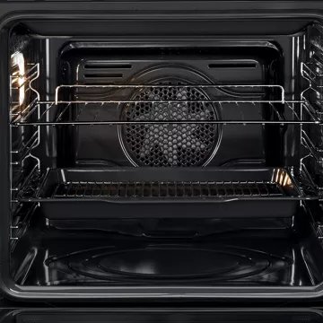 - Avantage de la chaleur tournante pulsée : le four est équipé d’un ventilateur et d’une résistance circulaire situées sur la paroi arrière du four, pour une cuisson simultanée de différents plats sur plusieurs niveaux
