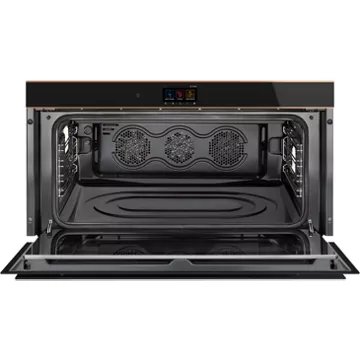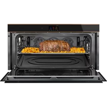 - Avantage de la chaleur tournante pulsée : le four est équipé d’un ventilateur et d’une résistance circulaire situées sur la paroi arrière du four, pour une cuisson simultanée de différents plats sur plusieurs niveaux