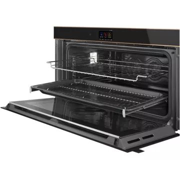 - Rails téléscopiques : ils permettent d’accéder à vos plats en les faisant coulisser en dehors de l’enceinte de cuisson en évitant les risques de basculement. Vous pourrez arroser confortablement votre rôti ou retourner facilement vos plats sans risque de brûlure.