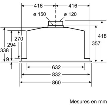 - Largeur : 86 cm, pour une zone de cuisson allant jusqu’à 90 cm de largueur.