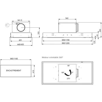 - Largeur : 120 cm, pour une zone de cuisson allant jusqu’à 120 cm de largueur.