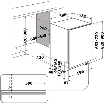 - Avantage tout intégrable : Le bandeau de commande est entièrement dissimulé dans la tranche de la porte. Ainsi, le lave-vaisselle tout intégrable est le plus discret de tous les appareils