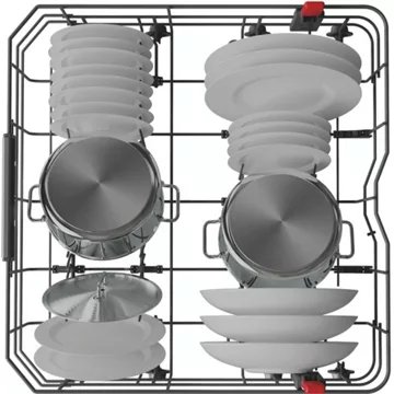 - Avantage du panier supérieur réglable en hauteur : Permet de laver des plats de grandes tailles ou de grands verres à pieds.