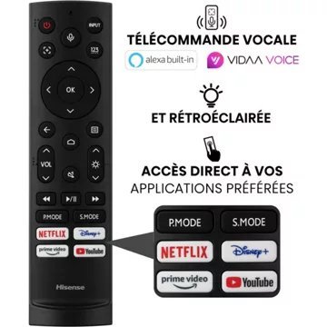 Véritable projecteur connecté grâce à son système Vidaa U6, le projecteur HISENSE Laser TV TRICHROMA C1 donne accès à un catalogue complet d’applications et de services de streaming. Nul besoin d’un autre appareil pour regarder vos films et vos séries préférés sur Netflix, Prime Video ou YouTube.