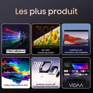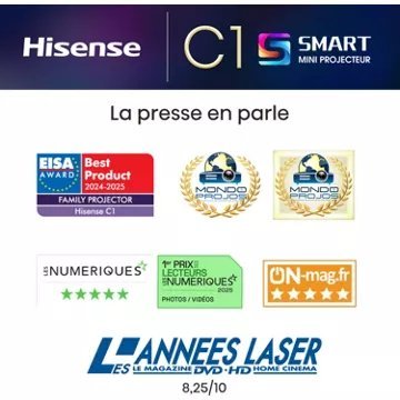 Compact et facile d’installation grâce à la correction géométrique, le projecteur HISENSE Laser TV TRICHROMA C1 s’adapte à tous types de contenus avec ses modes cinéma, sport et jeu. Diffusez vos images et vos vidéos directement sur le projecteur avec le lecteur multimédia intégré, via Airplay 2 ou avec la fonction de partage d’écran.