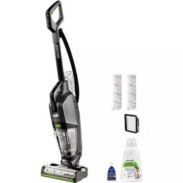 Il aspire, lave et sèche en un seul passage, et dispose d’un mode vapeur sur demande pour des résultats de nettoyage optimaux. La puissance de la technologie HydroSteam™ permet d’éliminer les saletés incrustées. Ce nettoyeur multi-surfaces 3-en-1 à puissance filière (et donc illimitée) est idéal pour le nettoyage de tous les sols durs et rafraîchit même vos tapis.