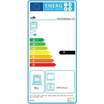 - Valeurs du label énergie : Label énergie A, Consommation en convection naturelle 0,78 kW, Consommation en chaleur tournante 0,83 kW