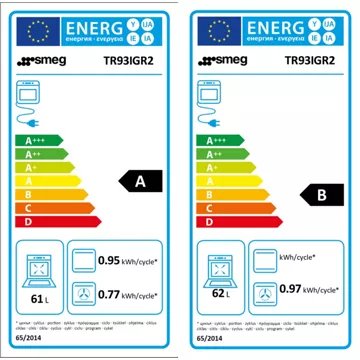 - Valeurs du label énergie : Label énergie A, Consommation en convection naturelle 0,97 kW, Consommation en chaleur tournante 0,77 kW