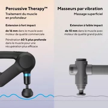 Le Theragun Elite G5 se distingue comme l’appareil de massage des tissus profonds le mieux noté du marché, offrant une expérience inégalée pour maximiser l’échauffement et accélérer la récupération post-entraînement. Grâce à son écran OLED, il affiche clairement la force appliquée et permet une vitesse personnalisable, assurant ainsi une séance de massage sur-mesure. La poignée ergonomique brevetée du Theragun Elite G5 est conçue pour atteindre aisément toutes les zones du corps, même les plus difficiles d’accès, permettant de diminuer efficacement la fatigue musculaire et d’améliorer les performances sportives. Avec une autonomie de batterie de 120 minutes, cet appareil est parfait pour une utilisation prolongée sans interruption.