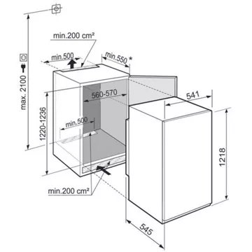 - Dimensions d’encastrement mini l x h x p : 56 x 122 x 55 cm