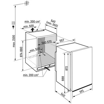 • Dimensions d’encastrement l x h x p : 56 x 87.4 x 55 cm
