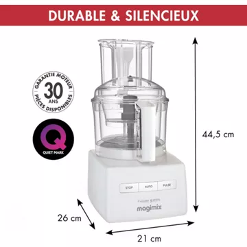 Entièrement fabriqué en France, ce robot multifonctions Magimix est équipé d’un moteur professionnel garanti 30 ans et ses pièces détachées sont également disponibles 30 ans. Ses accessoires conçus en acier inoxydable vous offrent une qualité de coupe parfaite.
