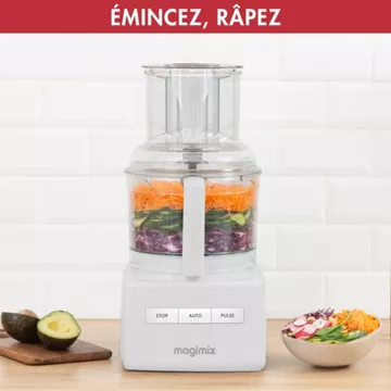 Le robot MAGIMIX C.S. 5200 XL Premium est un appareil complet qui permet de réaliser toutes les préparations pénibles à faire à la main. Equipé de plusieurs disques, il vous permet de râper, émincer, pétrir, battre et hacher à la fois des légumes, des viandes ou du fromage.
