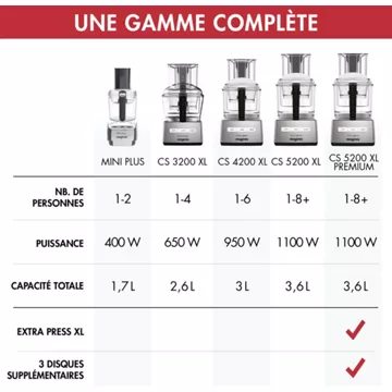 Fabriqué en France, le robot MAGIMIX C.S. 5200 XL Premium est un appareil complet permettant de hacher, râper, émulsionner ou pétrir tous les types d’aliments. Faites de la place dans votre cuisine en utilisant un seul appareil pour réaliser toutes vos préparations culinaires.