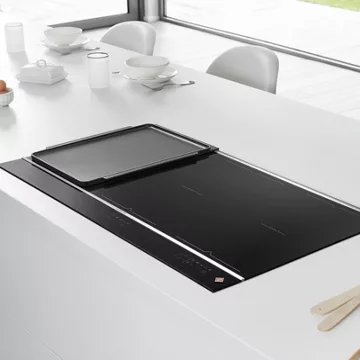 La très grande table à induction DE DIETRICH DPI7969XS est équipée de 6 foyers parfaits pour réaliser des recettes complexes et cuisiner pour de grandes tablées. Ces foyers sont répartis sur 3 grandes zones modulables. Vous pourrez fusionner les foyers et utiliser tous les types d’ustensiles, des petites casseroles aux grandes poêles en passant par les woks ou les cocottes ovales.