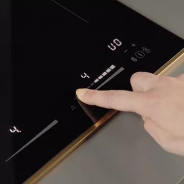 La table de cuisson SMEG SIM6864R, issue de la prestigieuse gamme Dolce Stil Novo, se distingue par son esthétique soignée et ses performances de pointe. Avec sa finition en verre céramique Eclipse noir et ses détails en cuivre, elle apporte une touche d’élégance à toute cuisine. Le bord droit de la vitre et la couleur grise de la sérigraphie renforcent son allure moderne. Les commandes Multi Slider frontales, dotées de LED blancs, offrent une utilisation intuitive et précise, permettant de régler les 9 niveaux de puissance avec une simple glissière du doigt. La table de cuisson électrique à induction de 80 cm de large est conçue pour s’intégrer harmonieusement dans les espaces de cuisine traditionnels, tout en offrant une expérience culinaire exceptionnelle.